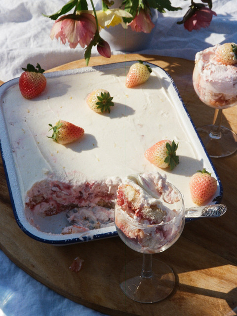 I may be getting ahead of myself by a month or so, but this strawberry, rose & chamomile tiramisu is my little love letter to the start of spring. Subtle and sweet, it's cloud like consistency melts in your mouth and reminds me of a perfect spring day. Assemble it in a tray and bring to a picnic or in little glasses for a beautiful finish to a spring dinner party, it's a dessert intended to share with friends.